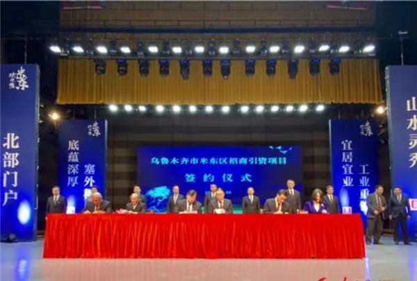 當天,烏魯木齊市米東區集中籤約項目18個,計劃總投資552.5億元。其中,服務業項目8個,計劃投資106億元;工業項目6個,計劃投資208.8億元;一二三產融合項目4個,計劃投資237.7億元。簽約引進匯嘉國際健康產業園、碧桂園奧體之光商住小區、華凌牛業田園綜合體、絲綢之路石材產業園、烏准精細化工(染顏料)產業園等一批重大項目。