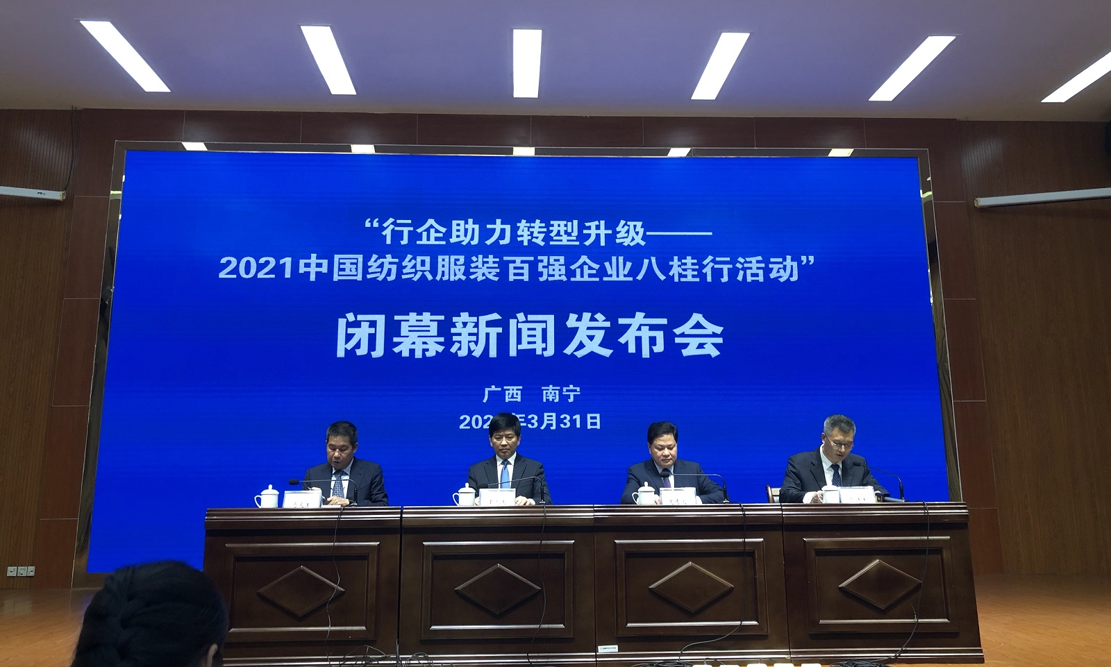 3月31日,「行企助力轉型升級—2021中國紡織服裝百強企業八桂行」活動閉幕新聞發佈會在南寧舉行。廣西工信廳黨組成員、總工程師馬義生在會上表示,廣西將持續加大招商引資力度,鼓勵和支持社會資本以合適的方式投資建設基礎設施和環保、能源配套項目,儘快建成和投產一批初具規模的紡織、服裝、絲綢特色產業園;科學發展涉水型紡織服裝產業,推動紡織服裝業綠色發展。