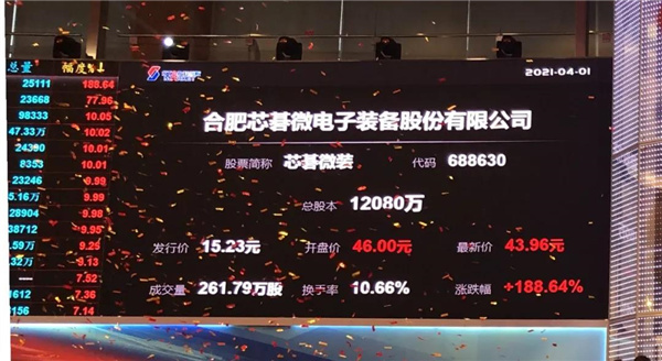 4月1日,安徽省合肥市高新區企業合肥芯碁微電子裝備股份有限公司(股票簡稱:芯碁微裝,股票代碼:688630)在上海證券交易所科創板鳴鑼上市,成為國內光刻設備第一股。