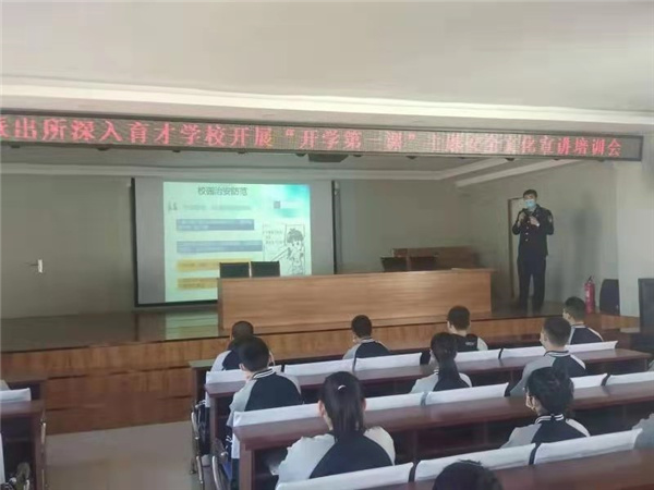 3月17日至18日,黑龍江省龍江縣通達派出所代理副所長高濤,民警馮偉,輔警王兆祥、郭繼燚分別深入龍江縣第六中學和龍江縣育才學校開展「開學第一課」主題安全宣講活動。重點圍繞校園消防安全、校園交通安全、校園治安防範、校園禁毒宣傳、校園欺凌等五個方面展開,並以鮮活的事例為內容,以學生喜聞樂見的生動語言講解在校園中需要注意的安全事項,與學生開展互動交流,解答學生問題,在同學們的歡聲笑語之中使學生真正的了解火災自救方法、校園欺凌危害以及反詐騙內容。