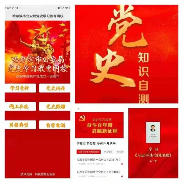 黨史學習教育活動開展以來,哈爾濱市公安局以「學史明理、學史增信、學史崇德、學史力行」為目標,結合教育整頓工作,組織全局各單位圍繞各自工作特點,積極創新學習舉措,開展了形式多樣、豐富多彩的黨史學習教育活動,營造出濃厚的學習氛圍。