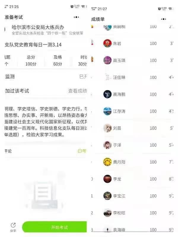 為進一步學習黨的百年光輝歷程,支隊積極運用網上答題程序製作了黨史知識題庫,開展網上測試,以答題的形式進行隨學隨練,對民警每日學習成果進行檢驗。支隊管理員針對每位同志答題情況,對錯題進行註解和訂正,進一步鞏固學習成果。定期公佈學習成績排行,營造了良性競爭的學習氛圍,確保黨員同志在學習中進一步築牢忠誠警魂,永葆忠誠之心,同時,支隊發揮科技工作職能,對市局打造黨史學習網校進行大力的技術支持。