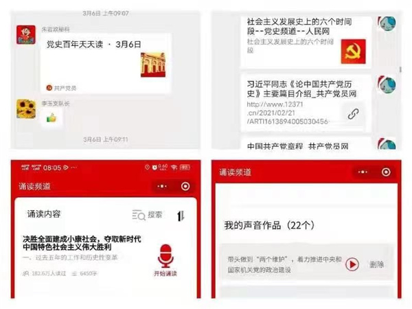 支隊組織全體同志對黨的重大理論成果和理論思想進行每日誦讀,通過網上誦讀平台,講好黨史故事、用活紅色資源,築牢黨員幹部的思想根基。黨員同志紛紛在平台上誦讀並上傳錄音,全體黨員理論水平有了明顯提升,思想認識不斷提高,宗旨意識不斷增強。