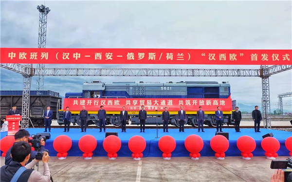 同日上午11時28分,漢中市市長鍾洪江宣佈中歐班列「漢西歐」發車。滿載43車精密儀器、食品、日用百貨等貨物的首列「漢西歐」從漢中市褒河鐵路物流基地始發,一路北上,當天到達西安港進行中轉分撥,再次搭乘中歐班列長安號開往俄羅斯莫斯科、荷蘭鹿特丹等地,實現13天到達俄羅斯,15至18天抵達鹿特丹。