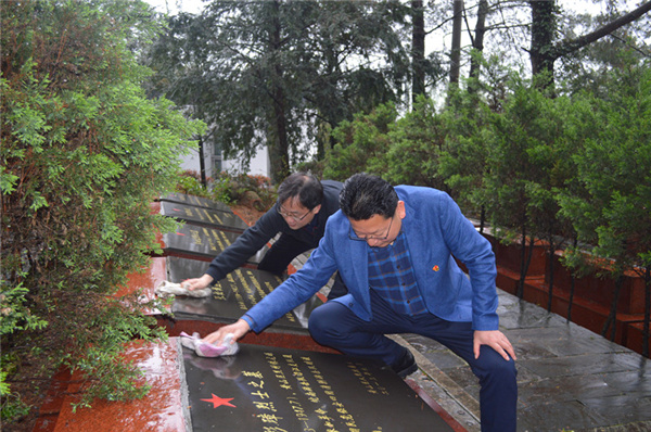 就在同一天,迎客松第五黨支部聯合片區黨員、群眾,攜帶幹布、掃把等工具,走進烈士陵園,虔誠地擦拭著墓碑,實地接受革命傳統教育。(記者 吳敏 通訊員 淩道元 候晏 蔡季安 杜俊鵬)