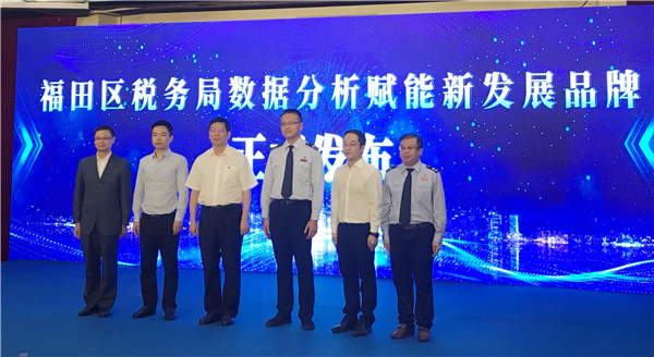 活動中,多個部門一同上台點亮屏幕,見證了福田區稅務局發佈「數據分析賦能新發展」品牌。隨即舉行了微電影《再出發》發佈儀式。此電影由福田區稅務局出品,講述了一個稅收助力小微企業艱辛創業的故事。