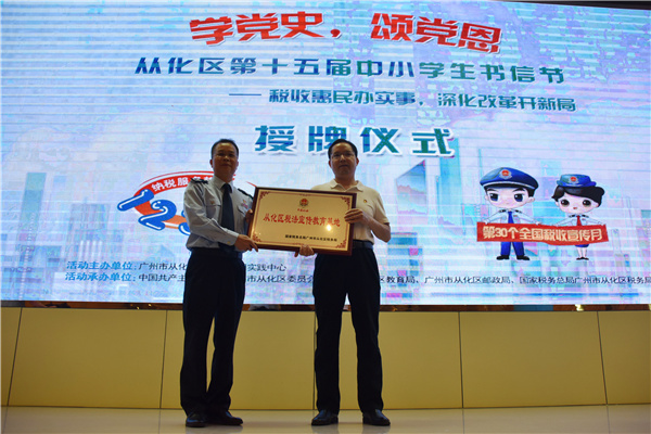 啟動儀式上,從化區稅務局與從化中學舉行「稅法宣傳教育基地」揭牌儀式,雙方將以此為契機開展形式多樣的稅收普法宣傳教育活動,增加學生對稅收的理解,樹立誠信納稅意識。隨後,與會嘉賓一起拿起信封,投入到郵筒中,拉開書信節的序幕。