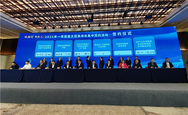 4月2日,湖南株洲舉行「促招引 開新局」2021年一季度株洲市重大招商項目簽約儀式,共有30個重大招商項目進行簽約。市委書記、市人大常委會主任毛騰飛,市委副書記、市長陽衛國出席活動並見證簽約。