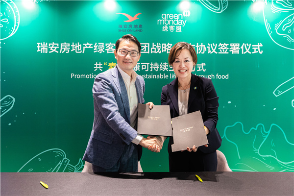 4月2日,瑞安房地產有限公司與香港社會企業綠客盟集團(Green Monday Group)簽訂了戰略合作諒解備忘錄,雙方將整合各自資源優勢,通過餐飲產品、線上線下活動等舉措,合作推廣植物性飲食理念,推動大眾健康可持續生活方式,共同為減少碳排放及社會可持續發展做出貢獻。