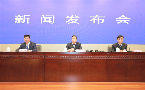 《安徽省委省政府關於全面推進鄉村振興加快農業農村現代化的實施意見》新聞發佈會現場,左起:安徽省委宣傳部新聞發佈處處長武瀟主持發佈會,省委農辦主任、省農業農村廳廳長盧仕仁,省農業農村廳副廳長王華先後介紹相關情況並回答記者提問