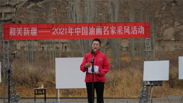 自治區文化和旅遊廳黨組書記、自治區文博院黨組書記侯漢敏表示,此次活動是慶祝建黨100周年的重要獻禮,將通過全國油畫藝術家們對新疆的深度考察和調研,深入挖掘新疆濃厚歷史資源、自然風光、各民族風情,展示新疆人民團結互助、開拓進取、奮發有為的時代風貌,用藝術的力量詮釋新疆發生的翻天覆地變化,是愛祖國、愛新疆的體現,是文化潤疆、文化援疆的體現,是各民族交流交往交融的體現,也是對新疆美術創作的大力支持。