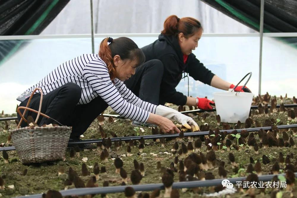 在四川省平武縣羊盤河羊肚菌產業基地黑色的遮陰大棚里,一朵朵鮮嫩的羊肚菌猶如一把把小傘,菌蓋飽滿肥厚,菌柄光滑如玉,色澤鮮艷誘人。農戶們正搶抓時機採收,基地里一派豐收的景象。