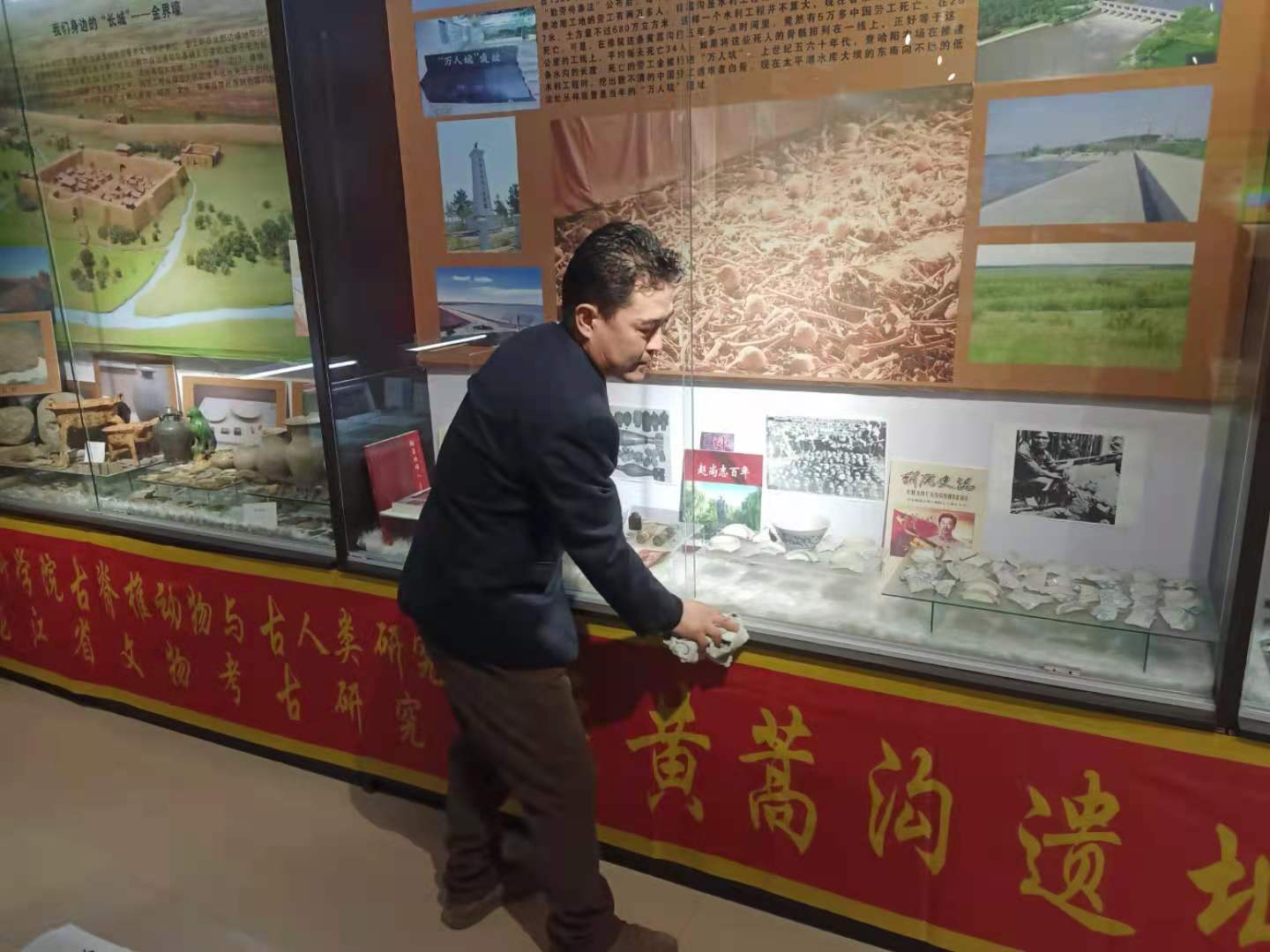 陸洪川正在擦拭展櫃