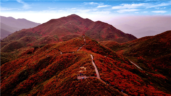 每年的4至5月,位於歷史文化名城長沙的瀏陽大圍山,在海拔1500米以上的連綿高山中,近十萬畝的野生高山杜鵑競相綻放,形成了令人震撼的杜鵑花海。4月20日至5月20日,瀏陽大圍山將舉辦主題為「人間四月芳菲盡,圍山杜鵑別樣紅」的第十三屆長沙(瀏陽)大圍山杜鵑花節。