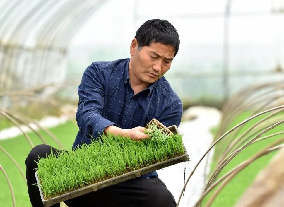 「前期先將育秧用的塑料托盆放到流水線上,經過鋪基質土、壓實澆水、播種和覆土,然後再將一塊塊育秧盤源源不斷地從生產線上移到大棚里。」說起工廠化育秧,有着多年育秧經驗的羅雙牛如數家珍。他從2013年開始採用工廠化生產方式培育水稻秧苗,將稻種播在帶土的規格化育秧盤內,發芽、出苗和育苗過程全部在育秧盤內進行。他今年再生稻秧苗培育了3畝多,可滿足400多畝田的再生稻種植需求。