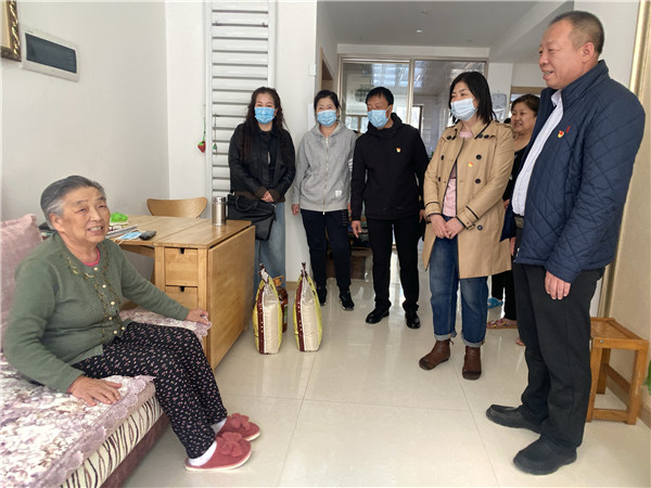 隨後,社區黨員們走訪慰問了轄區的孤寡老人、退役軍人及老黨員,為他們了送去米、面、油等慰問品,了解他們的生活情況,讓他們感受黨的關懷,感受到社區大家庭的溫暖。抗美援朝老兵遺孀白英賢老人今年86歲,她17歲入黨,也是一名優秀的共產黨員,當她收到社區黨組織送來的慰問品時激動萬分,她說:「作為一名近70年黨齡的老黨員來說,我感到非常幸福,黨員大家庭時刻讓我感受溫暖。我一定不忘黨恩,發揮餘熱,向年輕人傳遞正能量,繼續講好黨的故事。」