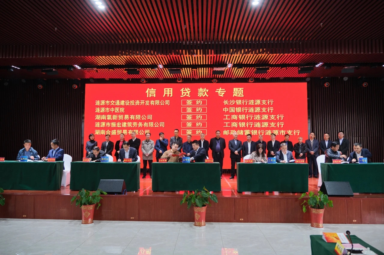 在簽約儀式上,有39個項目進行現場簽約,簽約金額44.789億元。漣源市人民政府與漣源農商銀行簽訂了《深化金融服務推進經濟社會高質量發展合作框架協議》;有七個專題貸款簽約,金額44.789億元,其中,鄉村振興專題項目5個,簽約金額200000萬元;重點項目專題項目3個,簽約金額88000萬元;高新技術專題項目5個,簽約金額5300萬元;製造業專題項目10個,簽約金額95900萬元;涉農貸款專題項目5個,簽約金額8790萬元;首次貸款專題5個,簽約金額31300萬元;信用貸款專題項目5個,簽約金額18600萬元。此外,還有42家企業與銀行達成意向簽約27.79億元。