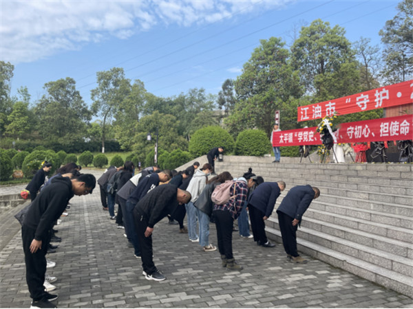 江油團市委舉行「清明祭英烈,共鑄中華魂」黨史教育活動。各界團員青年代表、江油職業中學校學生200餘人參加了活動。團員青年在烈士紀念碑前列隊肅立,重溫入團誓詞,通過敬獻花圈、默哀等形式緬懷革命先烈。儀式結束後,團員青年走進紅軍文物陳列館,回顧紅軍在江油戰鬥、建設蘇維埃政權那段波瀾壯闊的往事,讓大家深受教育。江油市各學校團委、少工委在西山烈士陵園、王右木紀念園、紅軍橋、烈士墓等紅色教育基地,開展「緬懷革命英烈」活動,帶領青少年接受生動的黨史教育、革命傳統教育和愛國主義教育,引導廣大青少年繼承革命遺志、傳承紅色基因,從百年黨史中汲取前行力量。