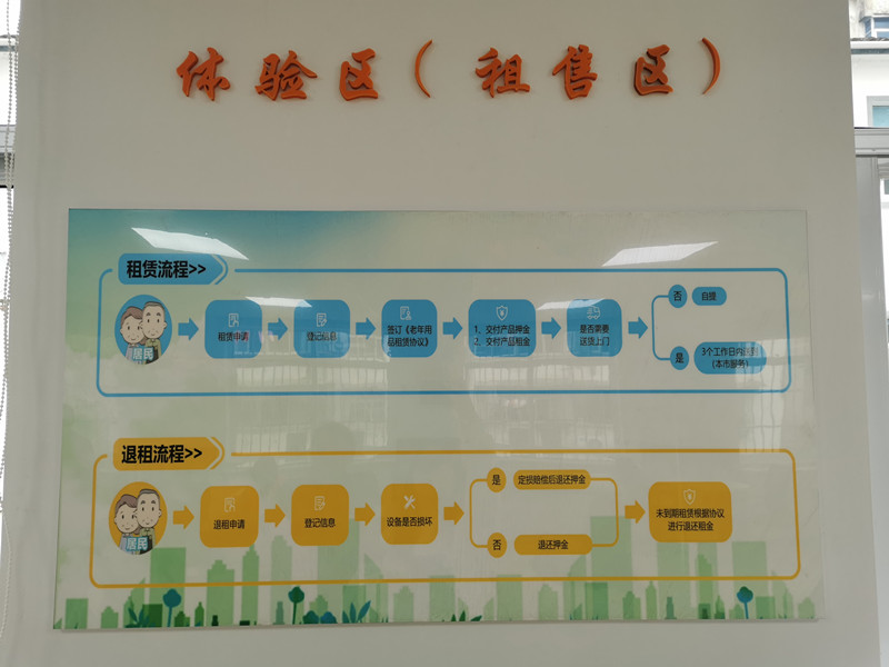 在陽湖鎮稽靈山社區的和康養老服務中心的輔具租賃點,洗浴椅、拐杖、輪椅、助行器、普通病床等輔具依次擺放,康復輔具租賃點負責人表示,現在共有7種康復輔具可以用作租賃,包含幫助他們走路、洗浴、護理等功能的輔具,每天來瞭解、租賃的人都不少。