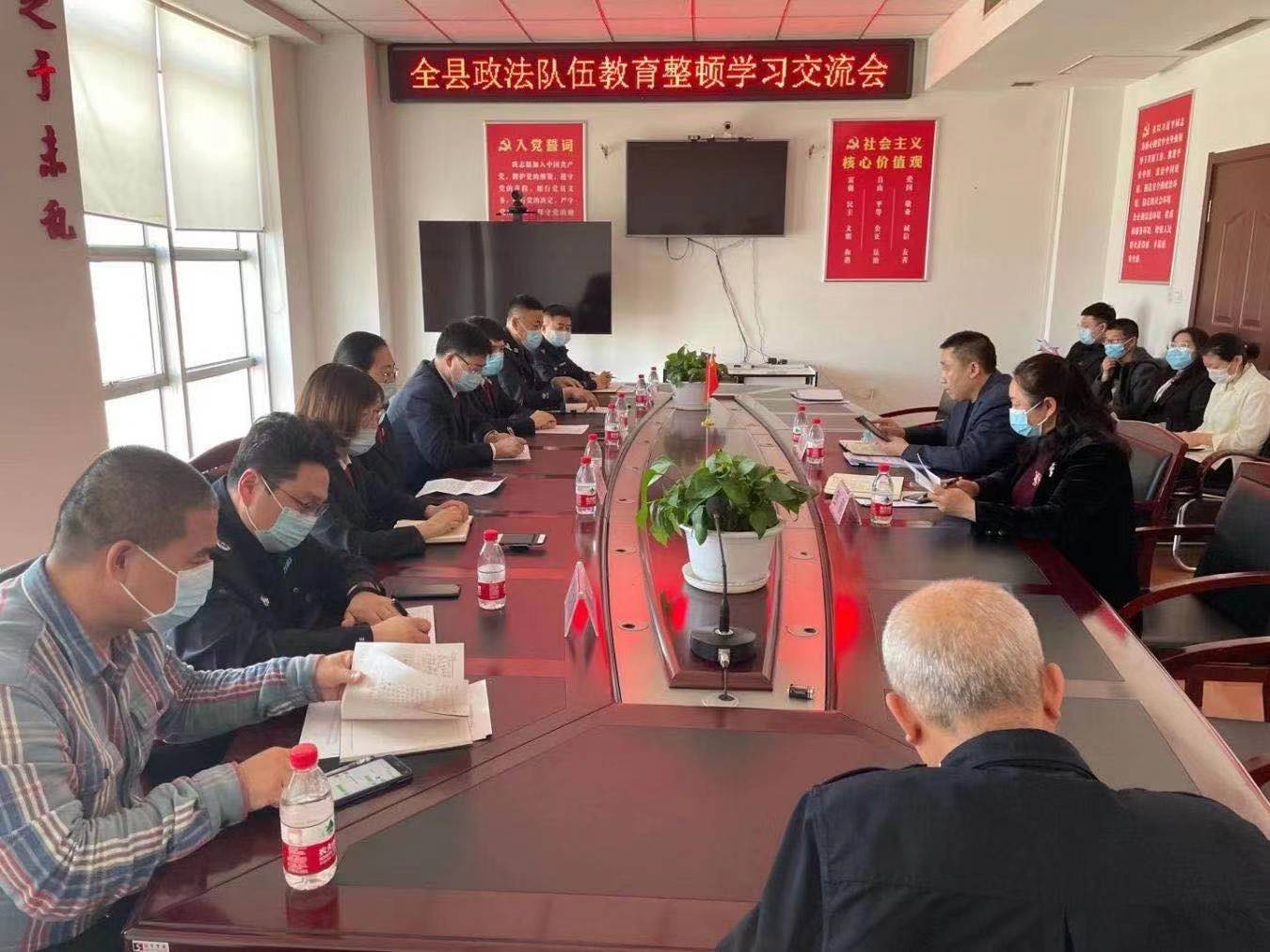 在理論學習上,發揮領導幹部「關鍵少數」作用,縣委書記、紀委書記、政法單位主要領導帶頭講黨課、作報告、開講座、搞交流,掀起學思想、學理論、學黨史的學習熱潮,開展各類大型學習教育活動34次,選樹政法英模18名,召開英模報告會3次,開展祭奠英雄紀念碑、走訪老戰士等活動12次。印發了學習教育階段實施方案、工作指引、工作提示,並打破慣用的集中學和自學方式,開辦早習班、晚習班、讀書班、領學班等,堅持必學科目與自選科目配套學,堅持每天學習不少於2個小時,堅持看筆記和口頭問答檢查學習質量;下發給政法單位和各鄉鎮,各政法單位開闢學習室、圖書室,為幹警搜集、購置各類學習資料1000餘本;堅持把學習落在筆頭、記在心頭,全縣政法幹警記錄學習筆記10餘萬字,撰寫各類心得體會2000餘份。