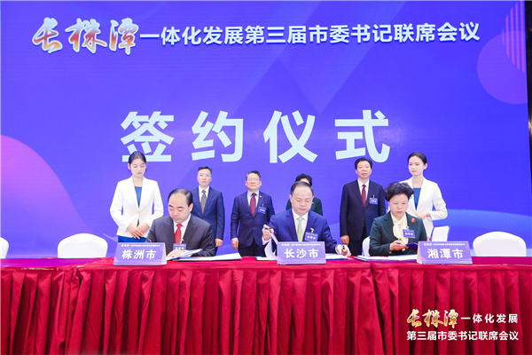會議通報了長株潭一體化發展第三屆市委書記聯席會議籌備情況及相關文件起草說明。會議審議並簽署了《長株潭一體化發展2021年行動計劃》、《深入實施「三高四新」戰略,全面推進長株潭重大產業協同發展的意見》、《關於長株潭三市保護生態環境、共建生態文明的實施意見》、《湖南湘江新區 湘潭市人民政府關於九華片區綜合開發戰略合作協議》,以及三市一體化專項工作合作協議等文件。