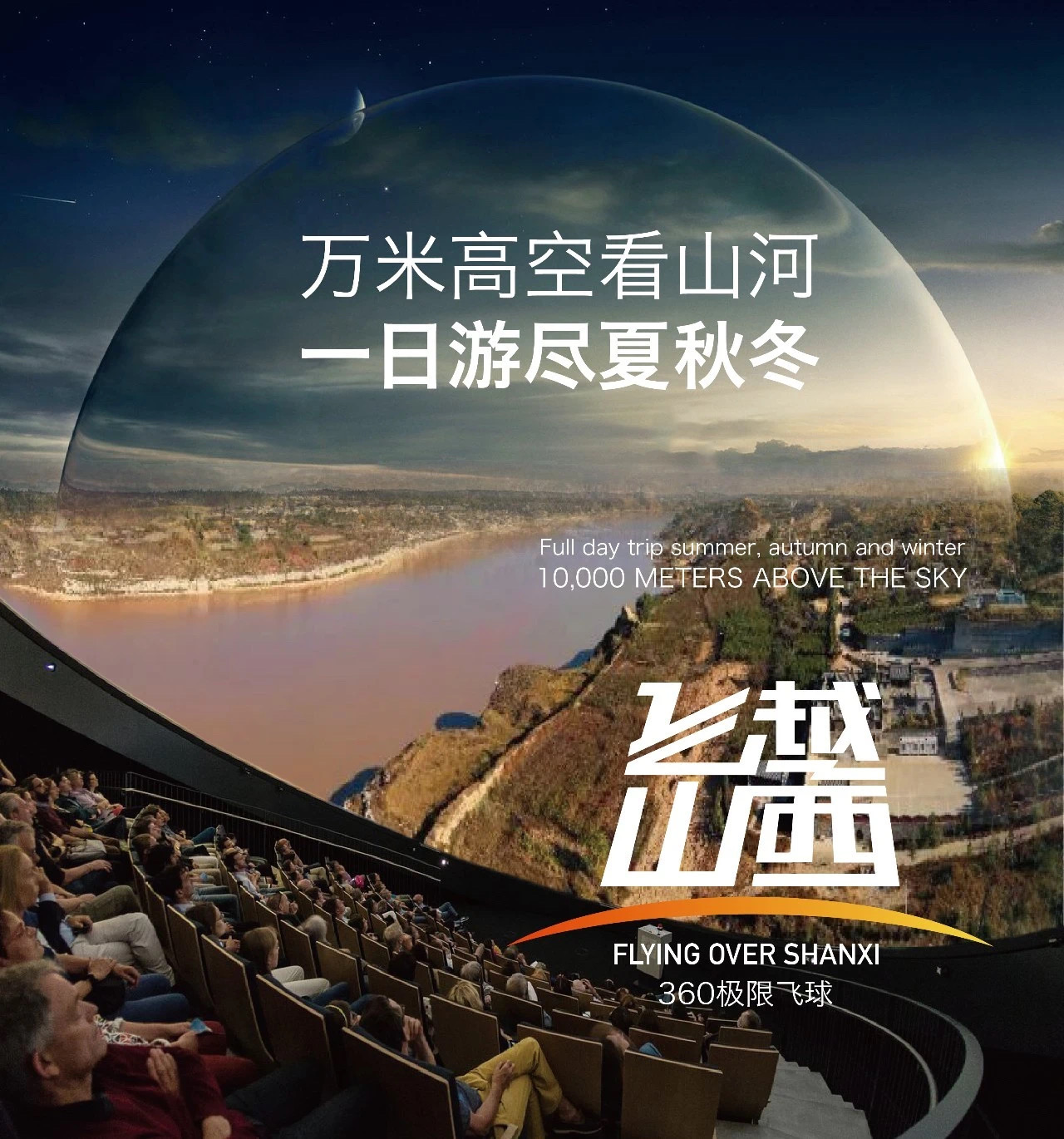 據悉,《飛越山西》360極限飛球是由大連博濤文化節、龍投文旅、華旅文化共同投資創建的高科技沉浸式飛越體驗項目,球幕外觀直徑達15米,內部由12平方米的巨型球幕、12部超高清投影儀和60個法拉利進口動感座椅組成。