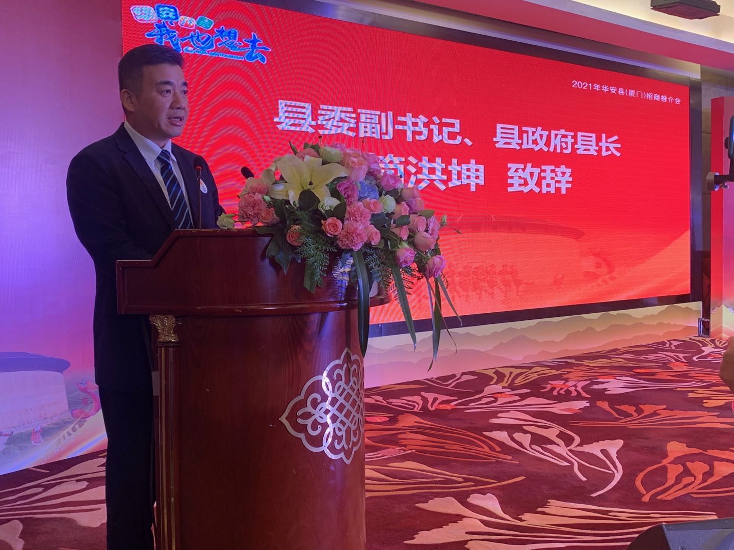 4月11日,「華安如意·我也想去」2021年華安縣(廈門)招商推介會活動在廈門舉行。華安縣委副書記、縣長簡洪坤等縣領導出席此次活動,來自各行各業的企業家代表、華安異地商會鄉賢、招商大使等人士應邀參會。