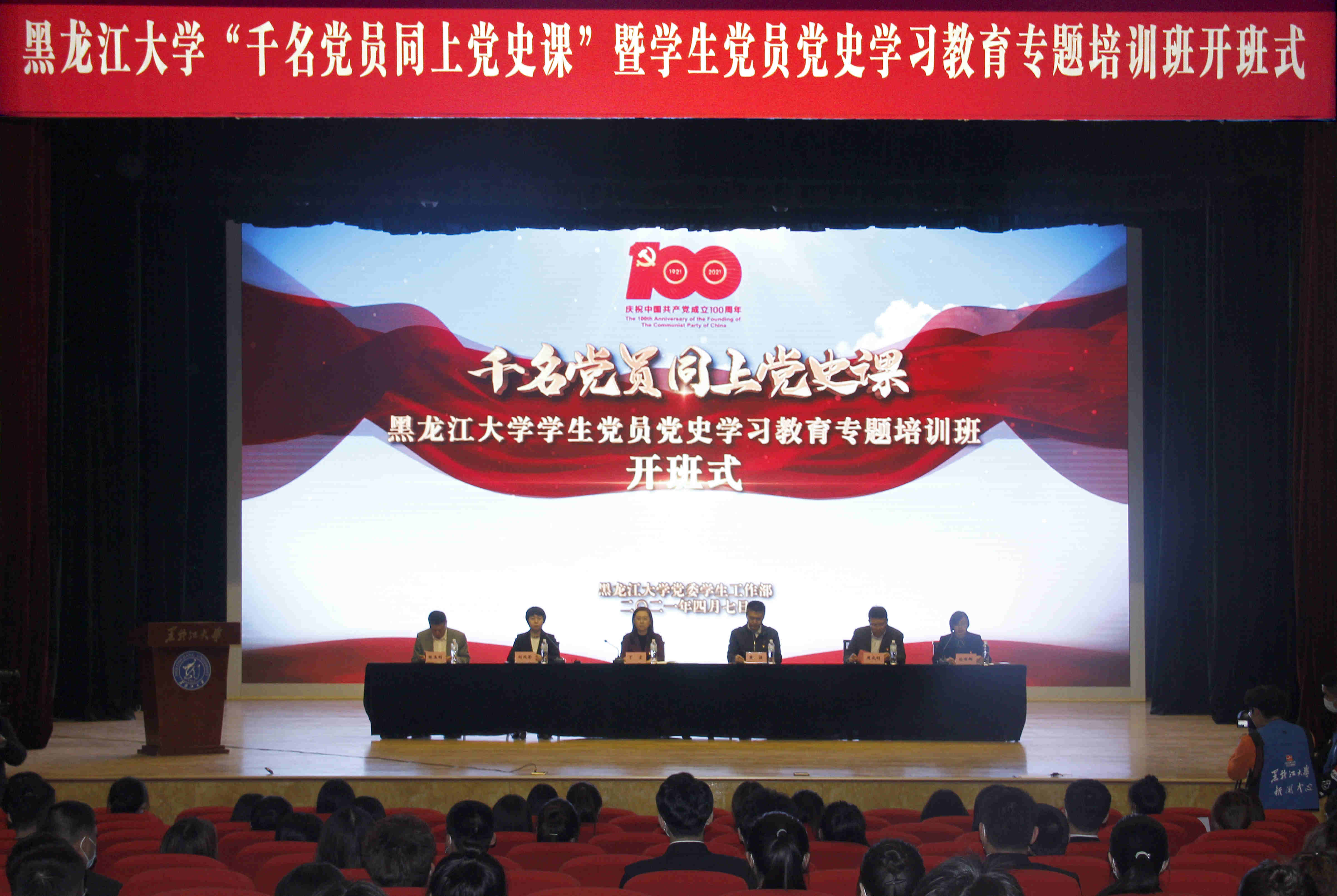 日前,黑龍江大學在音樂廳舉辦「千名黨員同上黨史課」暨學生黨員黨史學習教育專題培訓班開班式。學校黨委副書記丁宏出席開班式並講話,校黨委組織部、黨委宣傳部、黨委學生工作部、校團委等部門的負責同志,各學院主管學生工作領導、全體輔導員老師、學生黨員代表參加活動。學生工作部副部長孫麗娜主持開班式。