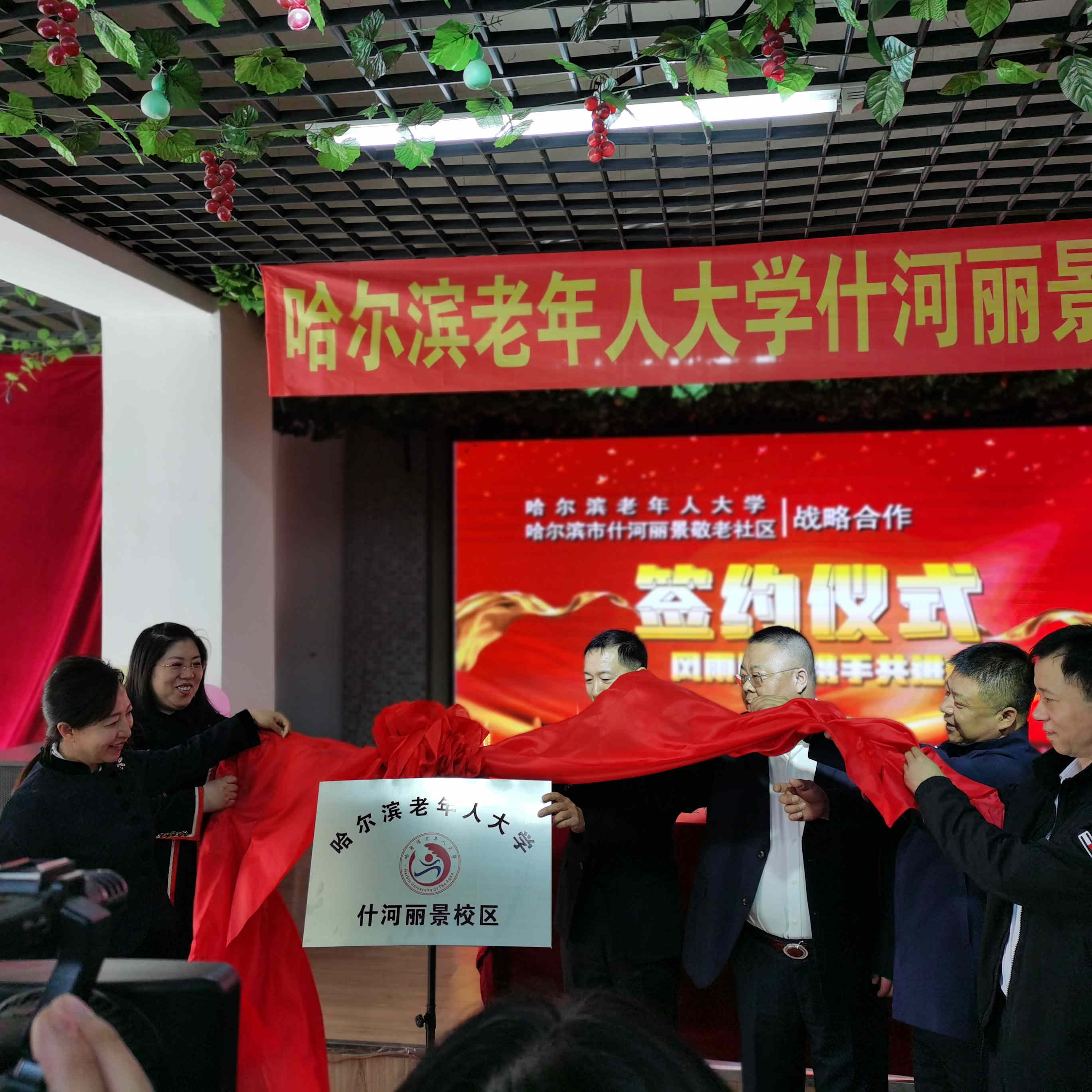 為了紮實推進黨史學習教育活動,切實為老年人辦實事, 4月12日上午,哈爾濱老年人大學與什河麗景敬老社區正式簽署戰略合作簽約,將老年大學的課堂辦進敬老社區,使住在敬老院裏的老年人一邊安康養老,一邊足不出戶就能上老年大學,享受精神富足的晚年生活。