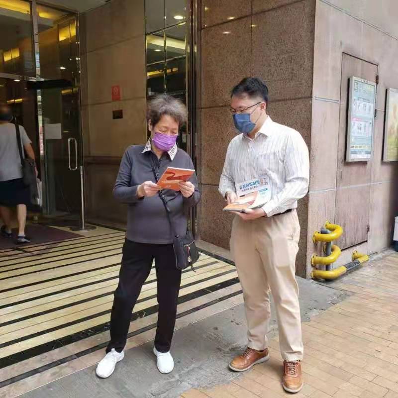 甘肅省政協住港委員廖宇軒上街為市民分發愛國者治港宣傳材料