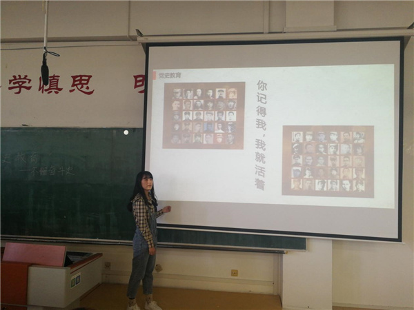 「概論」課上,教師組織學生以「圖說黨史百年」為主題開展課內展示活動。以黨的「不懈奮鬥史」「理論探索史」「自身建設史」為板塊,精選歷史圖片,解讀歷史瞬間,將具體的黨史事件、生動的黨史人物和科學的革命理論緊密結合,教育引導青年學生在解讀黨史的過程中樹立正確的黨史觀,把馬克思主義中國化的歷史進程、理論成果理解得透徹明白,使學生深刻領悟中國共產黨為什麼「能」、馬克思主義為什麼「行」、中國特色社會主義為什麼「好」,做到不忘歷史、不忘初心,知史愛黨、知史愛國、知史惜今,達到學史明理、學史增信、學史崇德、學史力行的效果。