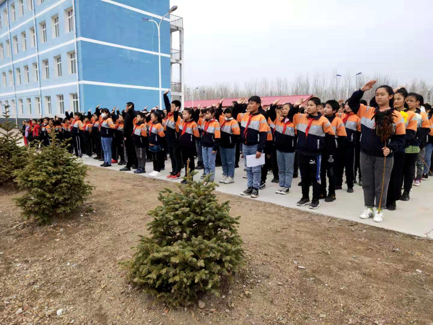 在富裕縣實驗小學裏,一場以「傳承紅色基因,致敬建黨百年」為主題的黨史學習活動正在開展。全校師生伴隨着莊嚴的國歌,懷揣着新學期希望和夢想目不轉睛地注視着國旗緩緩升起。隨後,富裕縣實驗小學校長薛淑麗以「牢記『四史』,傳遞薪火,我與祖國共成長」為題為全校師生上了一節生動的黨史課。在黨史課中薛校長勉勵全校師生要將「奮鬥+實幹」落實到每一天的學習、工作中。