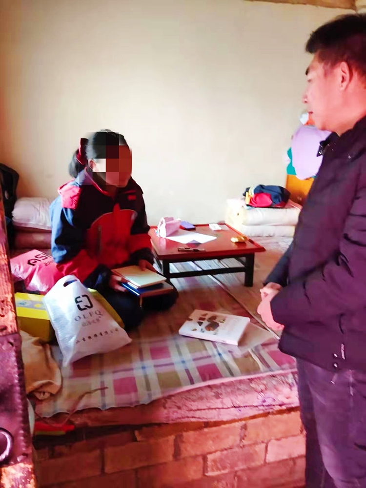 照片中的小女孩名叫燕子(化名),這是2019年天津援甘工作組胡春海在榆中縣幫扶的一戶群眾家的小女孩。看着很普通的一張照片,不僅記錄了胡春海為燕子送去學習用品時的情景,也滲透着他在榆中脫貧一線的點點滴滴。