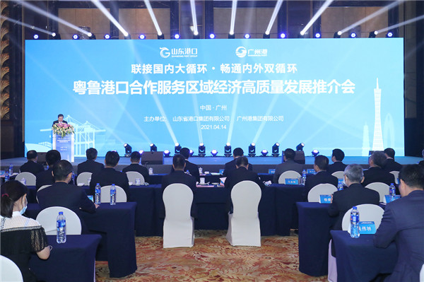 4月14日,山東省港口集團聯合廣州港集團在廣州舉行「聯接國內大循環 暢通內外雙循環」粵魯港口合作服務區域經濟高質量發展推介會。這是山東港口整合之後首次以港口「大家庭」的形式在廣州與客戶集體見面,與廣州港並肩協力為企業客戶服務、搭橋,暢通國內溝通南北的海陸大通道。