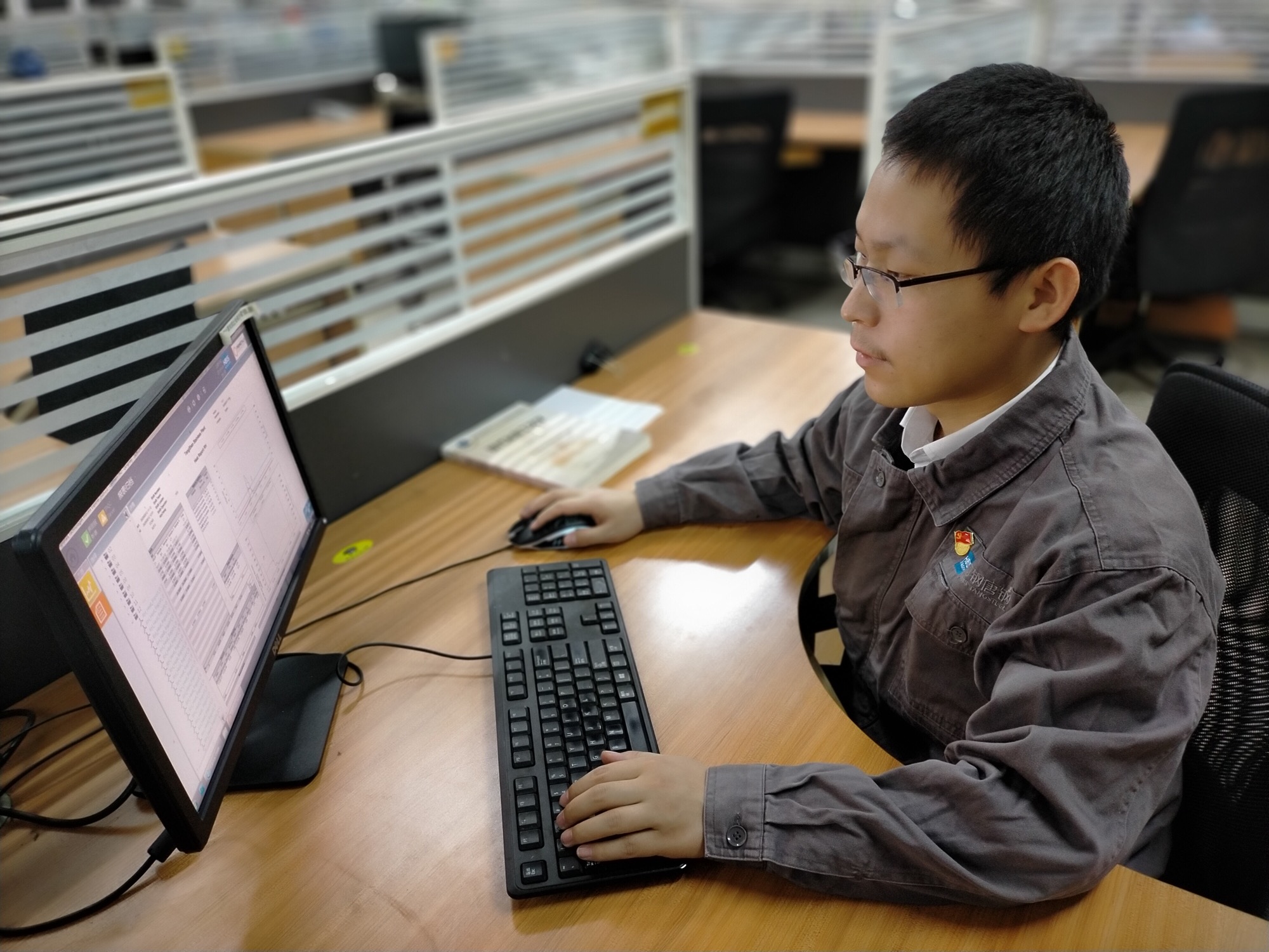 石曉偉正在查閱工藝參數。(孟慶勇 攝)