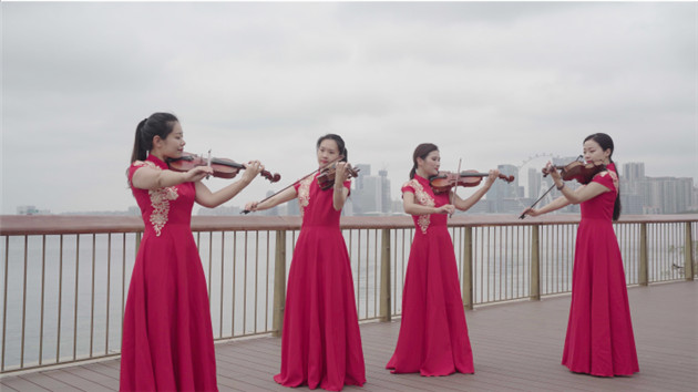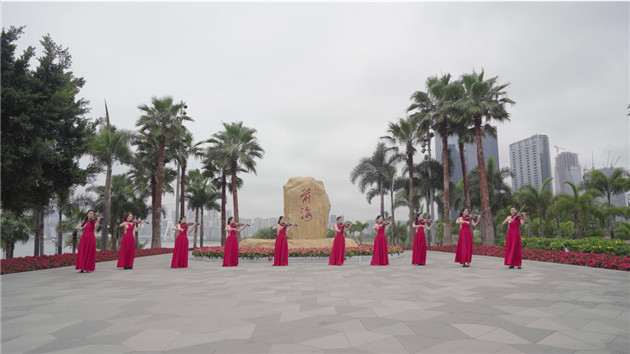 4月15日早上,清風拂面,椰香陣陣。在生機勃勃的深圳前海石公園,樂聲飄揚,舞姿翩躚。一支亮麗的女子樂隊正在前海石前深情演奏《我的祖國》,激揚的樂聲引來一群群遊客和市民駐足,他們心潮澎湃,眼睛潤濕,禁不住跟着樂聲深情地和唱。