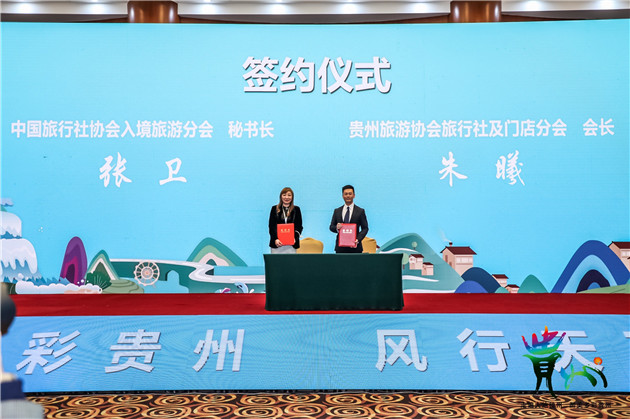 貴州省文化和旅遊廳副廳長李芳發佈了貴州省入境旅遊獎勵政策,貴州省中國青年旅行社有限公司總經理朱曦代表貴州入境旅行社做貴州入境旅遊聯程產品的推介。中國旅行社協會入境旅遊分會與貴州旅遊協會旅行社及門店分會簽署合作協議。