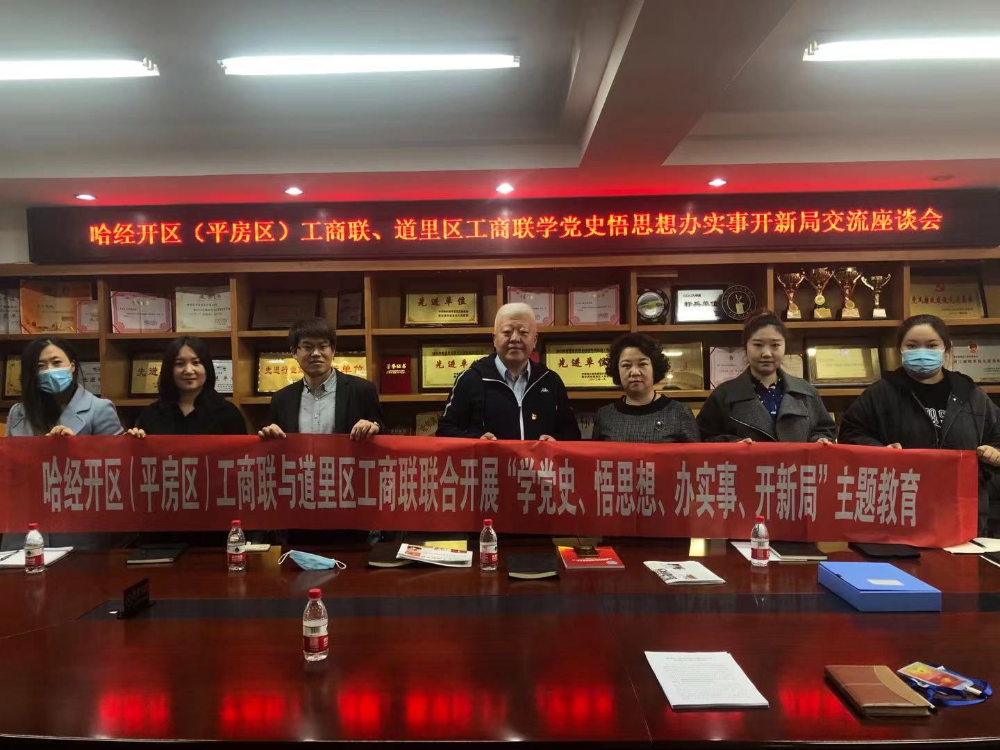 4月16日,哈經開區(平房區)工商聯與國裕集團到道里區工商聯交流學習,並聯合開展「學黨史、悟思想、辦實事、開新局」主題教育座談會,把為企業辦實事作為重要內容,運用智能化、信息化提升管理服務水平,凝心聚力為企業做好服務。