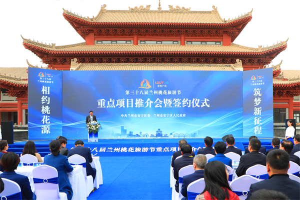 當天上午,第38屆蘭州桃花旅遊節重點項目推介會暨簽約儀式同期舉行。本次重點項目推介會由上海新城控股集團蘭州公司專題推介蘭州吾悅廣場項目。華潤萬家、傑仕健身、全季酒店眾邦國貿中心店、蘭州市襄陽商會、甘肅永洋建設工程有限公司、甘肅赫然建築模架有限公司、潮宏基、海馬體、29度酒店、畹町、雅禾綜合培訓學校、亞米益智教育中心、鹽池安寧片區(一期)等企業之間投資、技術、業態合作項目成功簽約。