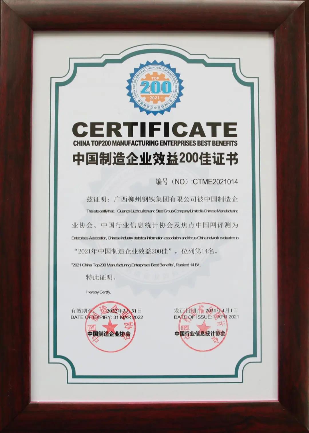 近日,2021年「中國製造企業效益200佳」評選活動結果出爐。柳鋼集團以2020年營業收入1174.01億元、利潤52.51億元再次上榜,位列14名。這是2019年評選活動開始以來,柳鋼集團連續3年上榜,其中2019年位列第16位、2020年位列第15位。