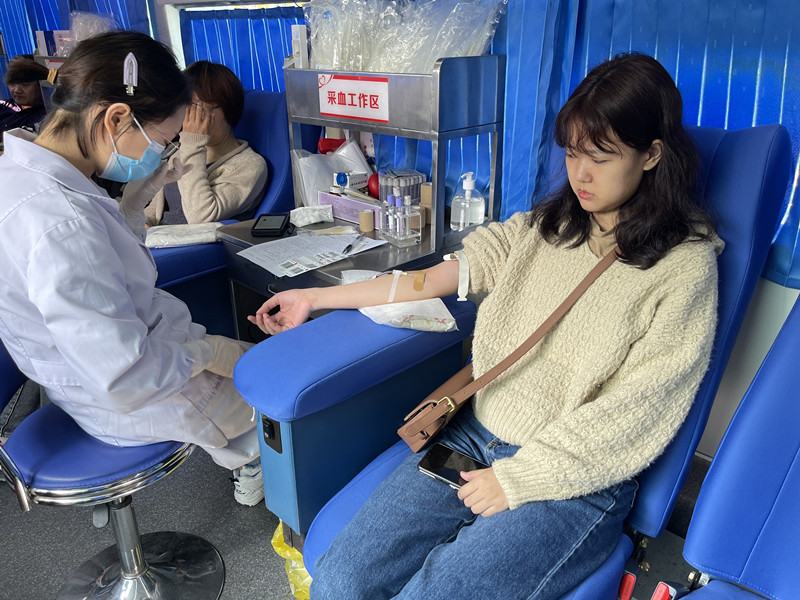 隨著獻血車駛入,分中心志願者們與大家一起自覺排起了長隊,在醫務人員的引導下有條不紊地登記資訊、血液化驗檢測、采血。在這些獻血志願者中,他們有的是數次參加無償獻血的老同志,也有剛參加工作不久的新員工,其中不乏巾幗不讓鬚眉的女同志。剛剛入職3個月的吳韓,首次獻血的她既緊張又興奮,當獻血完成後,發現獻血也沒有那麼可怕,成功獻血也是對自己的一次鼓勵,表示今後條件允許,還會繼續參加此類活動,為社會公益事業添磚加瓦。