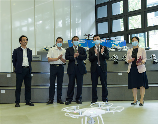 調研人員在學校門口《碩果纍纍》雕塑旁,欣賞了學校無人機技術應用專業學生的無人機編隊穿越表演,數十台無人機翱翔藍天。隨後參觀了學生作品展覽廳,參觀了學校智能電子無人機實訓室、珠寶專業首飾微鑲和切磨實訓室等專業實訓室等,對學校專業建設情況、課程安排、教學模式等進行了詳細了解。