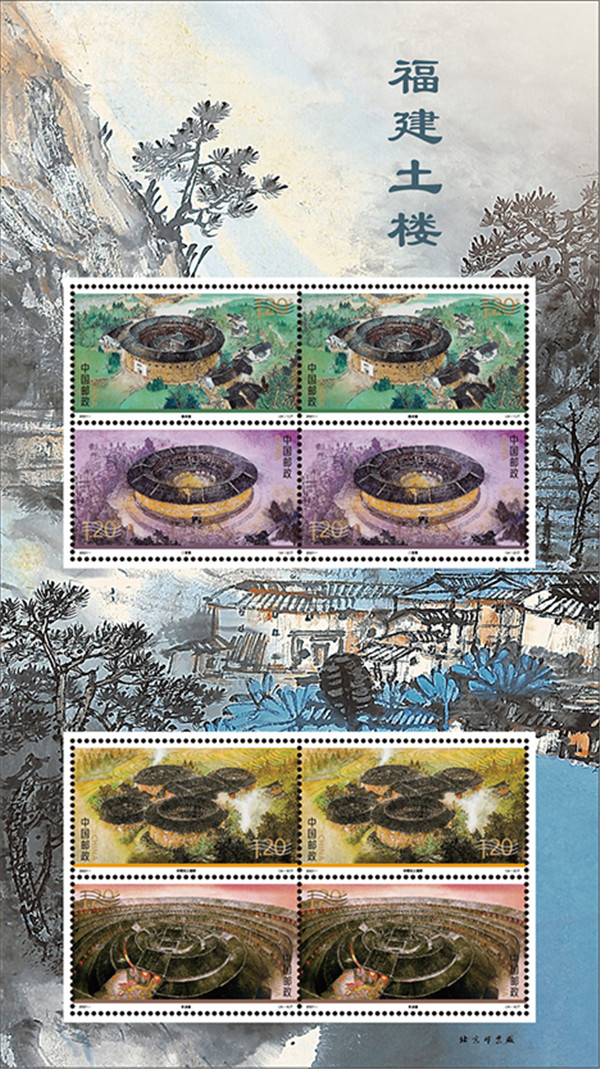 《福建土樓》特種郵票由振成樓、二宜樓及田螺坑土樓群、承啟樓四張郵票組成。該套郵票圍繞土樓的四季變化,以中國傳統繪畫工寫結合的表現手法,色彩鮮明地演繹出與眾不同的土樓造型與人文氣息,並通過光影變化、空間構圖及色彩搭配凸顯了土樓這種建築形式所承載的向心、團結的情感內蘊。