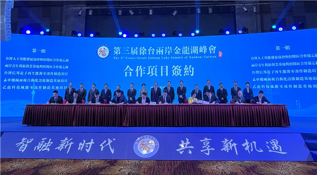 4月20日,第三屆徐台兩岸金龍湖峰會在江蘇徐州經濟技術開發區舉辦。這是今年以來大陸方面舉辦的首場重要的兩岸交流活動。會上,15個項目現場簽約,累計投資額達34.7億元。國務院台灣事務辦公室經濟局局長張世宏表示,兩岸貿易持續增長,台商投資大項目增多、科技含量提升,兩岸產業鏈、供應鏈持續鞏固,充分說明兩岸協同發展的大勢不可阻擋。
