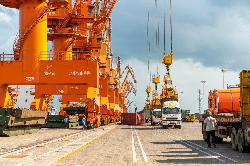 繁忙的北部灣港北海鐵山港區作業現場