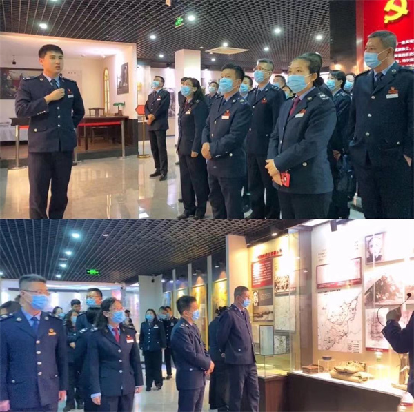參觀過後,由香坊區局黨委委員、副局長徐海燕領誓,全體黨員幹部面對黨旗莊嚴肅立,重溫入黨誓詞、重憶入黨經歷,牢記黨員義務、堅定黨的信念。此次重溫入黨誓詞活動,樹立了全體黨員的光榮感和使命感,激勵了全體黨員發揮先鋒模範作用,以高度的政治自覺和責任擔當,做一名合格的新時代國家好稅官。