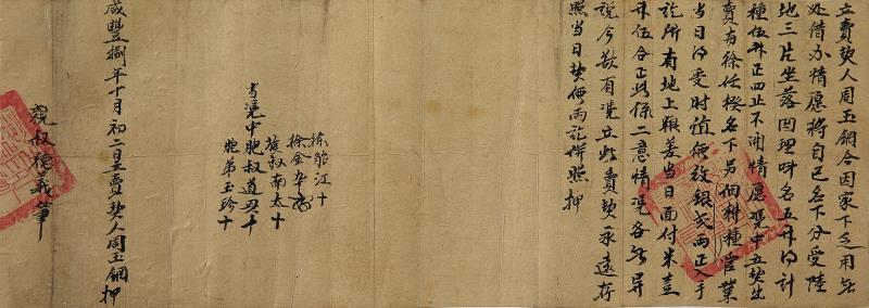 另外,與此契相關聯的則是兩年後的鹹豐八年周玉鋼的一份賣地契,買主同樣是徐任揆。