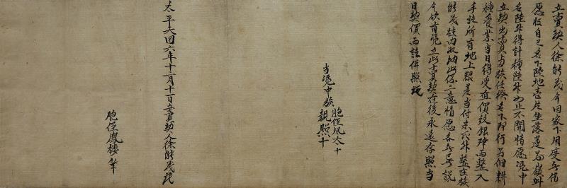 該契為宣紙,長57釐米,寬19釐米,契文為毛筆墨書,從右向左豎寫,字體大致為楷體。值得注意的是,太平天國的國字中“玉”沒有一點,寫成“王”字,這正契合了太平天國對文字的改革。