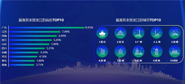 根據數據,2020年在抖音平台,最喜歡來黑龍江的省份統計,排在前十的省份是廣東、江蘇、河南、浙江、山東、四川、安徽、河北、湖北、湖南。