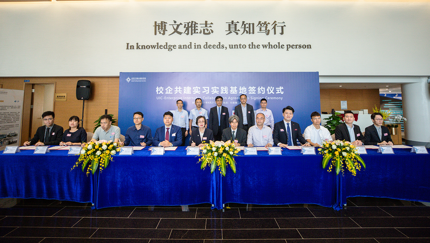 4月21日,北京師範大學珠海分校香港浸會大學聯合國際學院(簡稱UIC)與十家珠澳企業舉行共建校企實習實踐基地簽約儀式,十家企業涵蓋人力資源、互聯網、傳媒、會計行業,以及酒店、劇院等行業,為UIC在校生提供更多的實習實踐機會。
